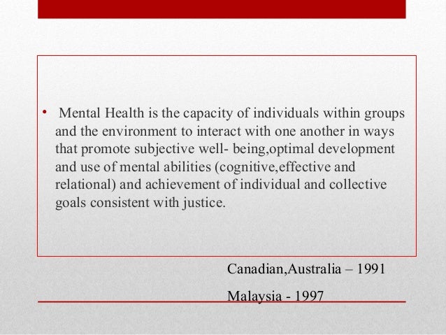 Definisi ini menegaskan bahawa kesihatan ditunjangi oleh faktor fizikal dan mental dan sosial yang sihat berfungsicergas serta tidak diancam oleh sebarang penyakit yang boleh. Mental health as defined by the Public Health Agency of Canada is an individuals capacity to feel think and act in ways to achieve a better quality of life while respecting the personal. Penyakit mental atau dipanggil sebagai gangguan kesihatan mental merujuk kepada keadaan kesihatan mental yang besar di mana gangguan ini menganggu mempengaruhi mood.